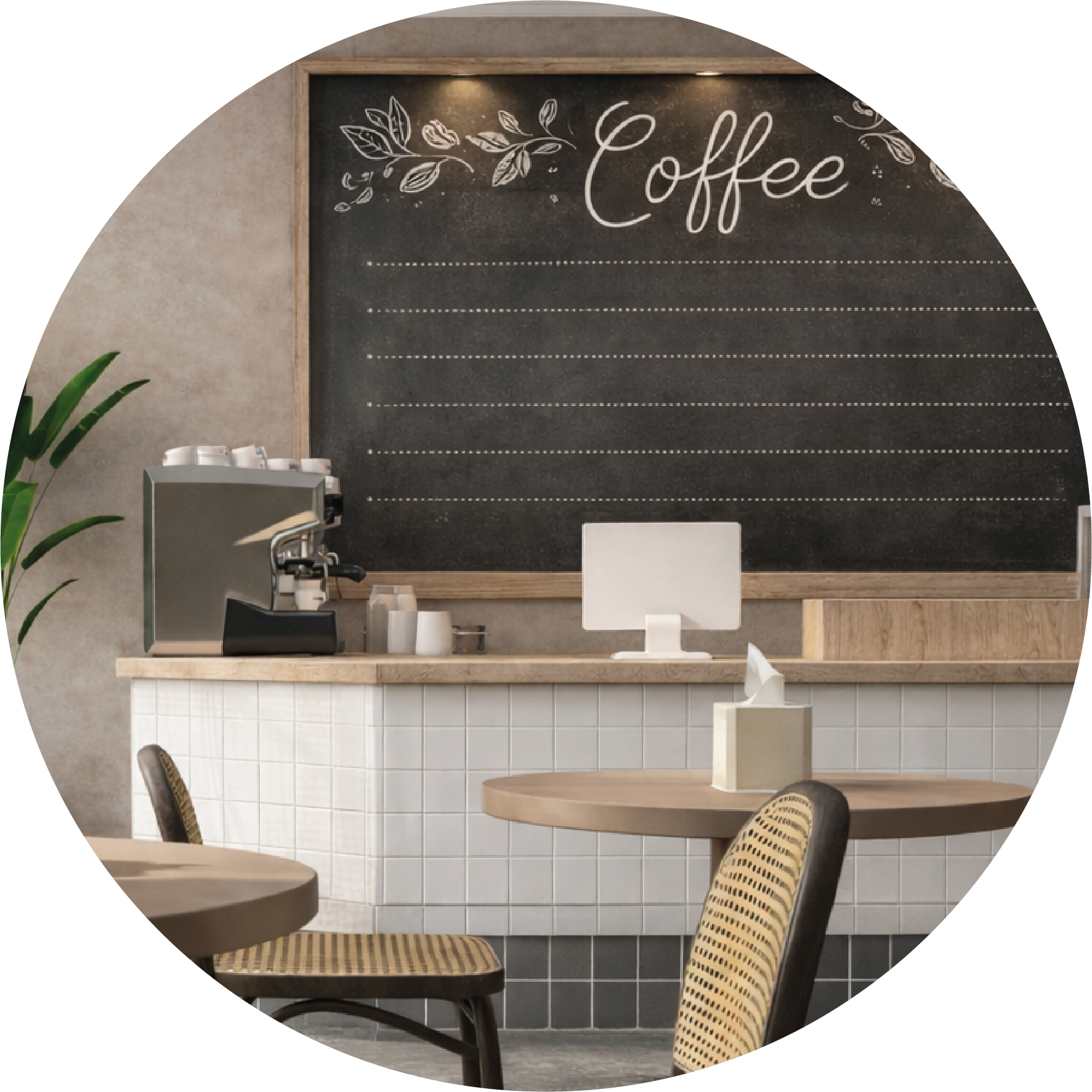 Tématické motivy i firemní grafika, která dotvoří interiér.