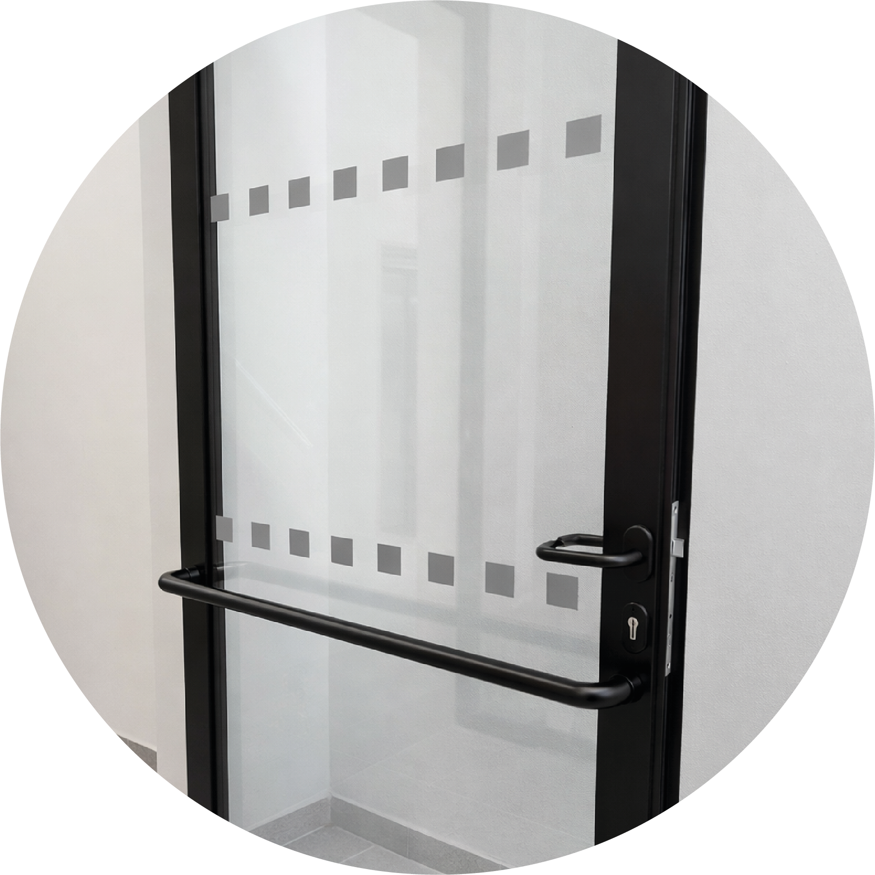 Pískovaná fólie z řezané grafiky pro skleněné plochy.